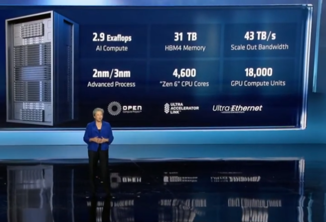 La CEO d'AMD Lisa Su a donné quelques éléments sur le prochain rack Helios prévu cette année. (Crédit : AMD)