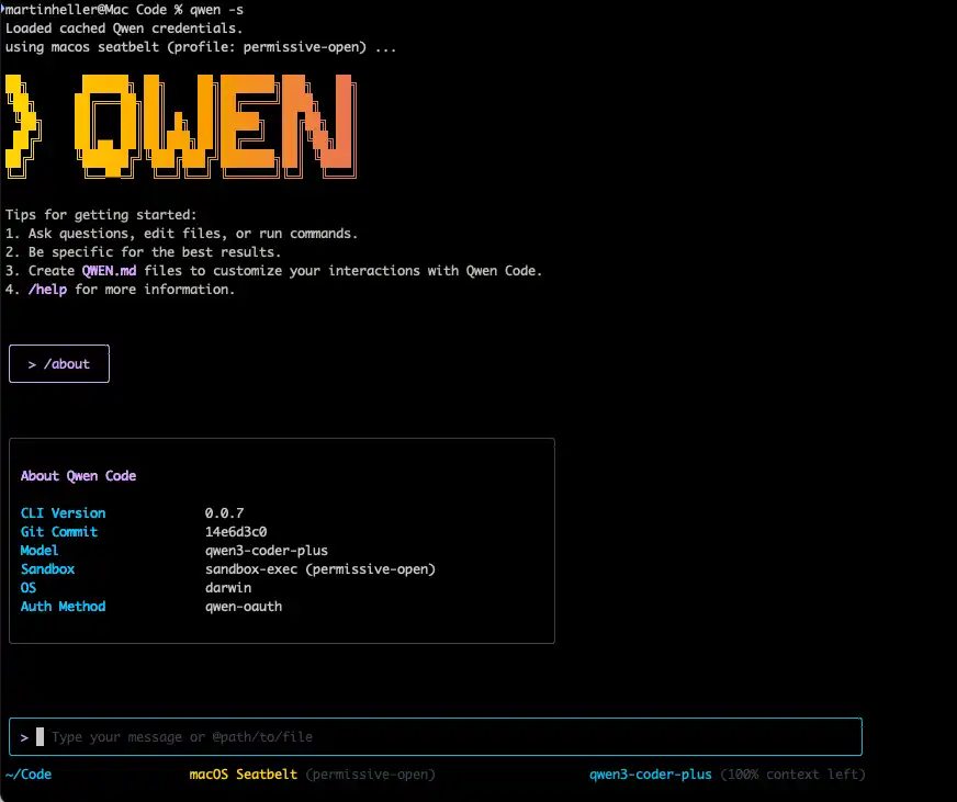 En utilisant soit la CLI (interface de ligne de commandes) de Qwen, soit LLxprt Code, vous pouvez vous inscrire et vous authentifier auprès d'Alibaba à l'aide de votre compte Google et dépenser une quantité généreuse de jetons en utilisant le modèle Qwen3-Coder (Qwen3-Coder-480B). Ce modèle est assez bon, et avec une longueur de contexte de 256K, c'est un bon point de départ. Le niveau gratuit est assez généreux.