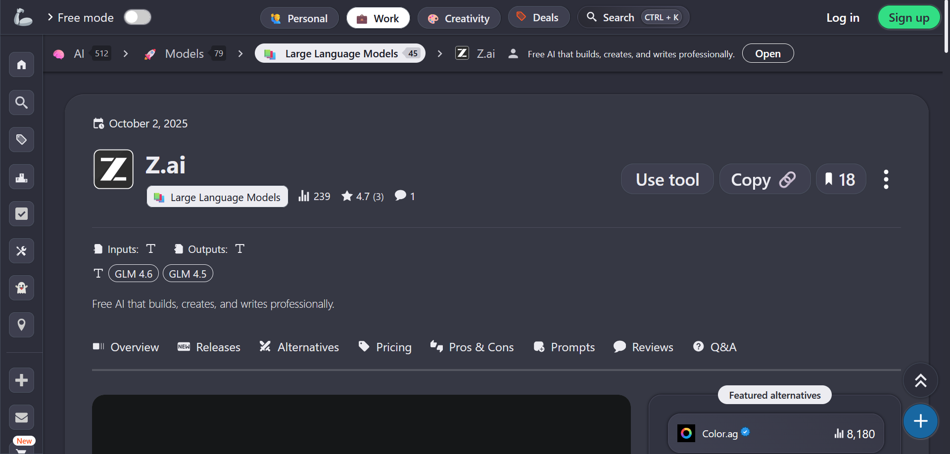 Z.ai propose à un prix abordable des capacités intéressantes. (Crédit Photo: Z.ai)