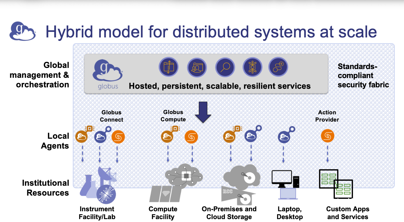 Globus offre aujourd'hui des services complets de gestion des données : transfert managé avec optimisation de la vitesse et garantie d'intégrité, partage collaboratif sécurisé sans réplication de données, et exécution de calculs à distance. L'architecture hybride de la plateforme repose sur des agents locaux déployés dans les institutions, connectés à un service global de gestion et d'orchestration. « Les données elles-mêmes ne transitent que directement de la source à la destination. Elles ne passent jamais par nos serveurs », précise la directrice exécutive, permettant ainsi d'exploiter pleinement les réseaux de recherche à très haut débit de 100 à 400 gigabits. La plateforme s'intègre à une multitude de systèmes de stockage hétérogènes via un programme de connecteurs communautaires, offrant une interface unifiée pour accéder aux systèmes HPC, stockages institutionnels, archives sur bande et clouds commerciaux (AWS, Azure et GCP)