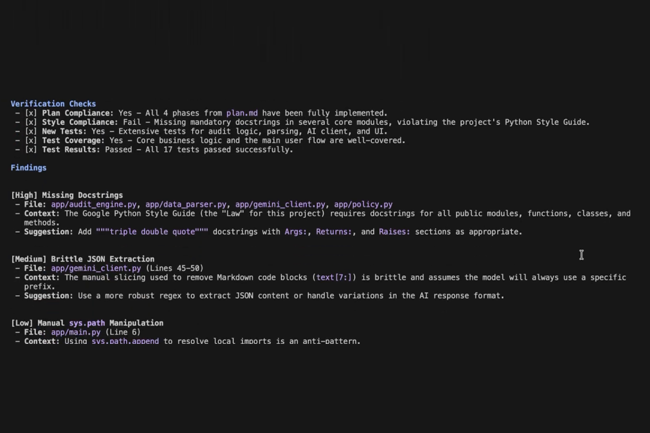 Avec la révision de code, Conductor AI introduit une vérification rigoureuse dans le cycle de vie du développement. Une fois que l'agent de codage a terminé ses tâches, Conductor génère un rapport post-implémentation complet. La sécurité étant intégrée au cœur de chaque revue, l’extension recherche les vulnérabilités avant la fusion du code. Les problèmes à haut risque sont signalés, tels que les clés API codées en dur, les fuites potentielles de données personnelles (PII) ou la gestion non sécurisée des entrées pouvant exposer l'application à des attaques par injection.