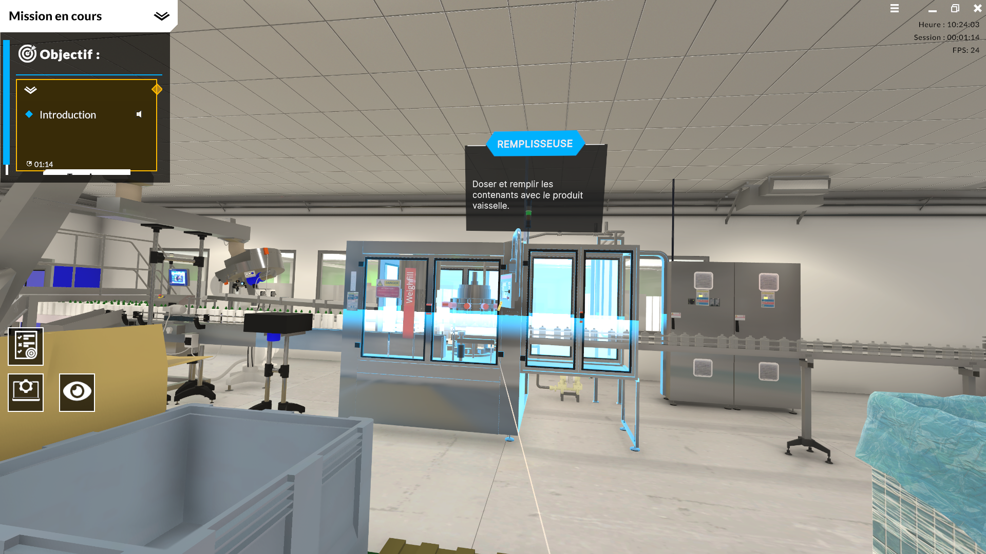 Les apprenants dosent et remplissent des contenants dans l'environnement 3D d'University. (Crédit: Goupil Technology)