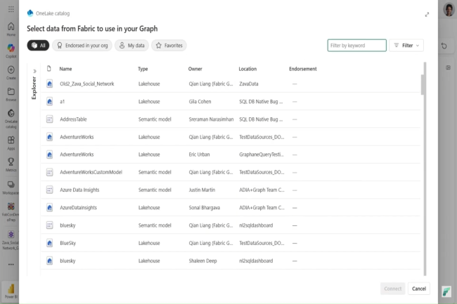La fonction de base de données graphe se superpose avec OneLake de Fabric. (Crédit Photo: Microsoft)