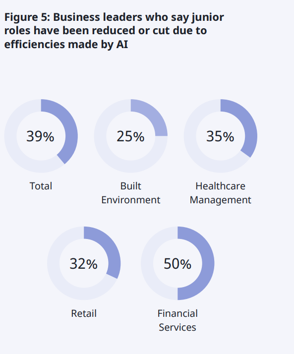 Secteurs d'activité ou l'IA a réduit ou supprimé des postes de juniors. (Source : BSI)