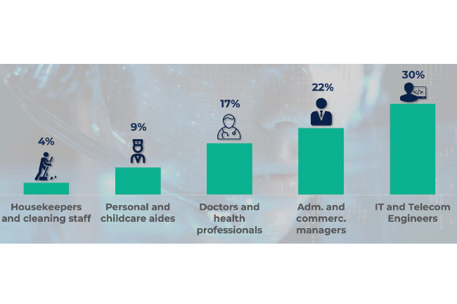 Contrairement aux idées reçues, ce ne sont pas les emplois peu qualifiés qui sont les plus menacés par l’IA. Les métiers manuels fortement dépendants du contexte, comme les agents d’entretien, les pêcheurs ou les ouvriers du bâtiment, présentent un faible risque d’automatisation. A l'inverse, les métiers de l'informatique sont particulièrement exposés. Dans l’étude, les chercheurs estiment que 21 métiers recensés (développeurs web, applicatifs, analyste en cybersécurité, administrateur de base de données,…) affiche un score moyen d’automatisation de 30% ce qui les menace directement.