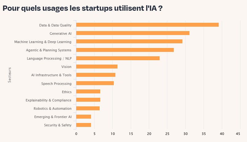 Usages des start-ups de l'IA en 2025. (Source: France Digitale/Sopra Steria Ventures)