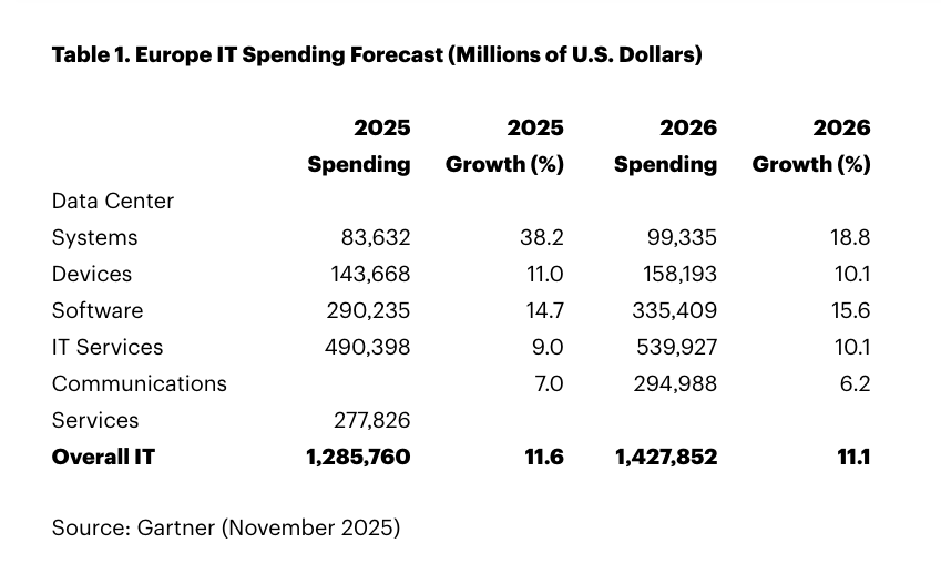 Selon une récente étude menée par le cabinet Gartner, les dépenses IT en Europe devraient atteindre 1 400  milliards de dollars en 2026, soit une hausse de plus de 11 % par rapport à 2025. Ce dynamisme est principalement porté par l’accélération des stratégies de transformation informatique des entreprises, de plus en plus centrées sur la donnée, l’intelligence artificielle et l’automatisation. Le secteur des logiciels domine cette croissance avec une progression prévue de près de 15 %, pour un total de 335 milliards de dollars. Cette évolution s’explique par l’industrialisation du cloud, la généralisation des fonctionnalités d’IA générative et la montée en puissance des usages data dans tous les secteurs. « L’IA, le cloud et la cybersécurité constituent les principaux leviers du développement des investissements IT en Europe pour 2026 », constate John-David Lovelock, analyste chez Gartner. Malgré des budgets contraints et des équipes limitées, les directions informatiques privilégient l’achat de logiciels intégrant des fonctions exploitant des capacités IA, proposées par des fournisseurs comme Salesforce, SAP ou ServiceNow.
