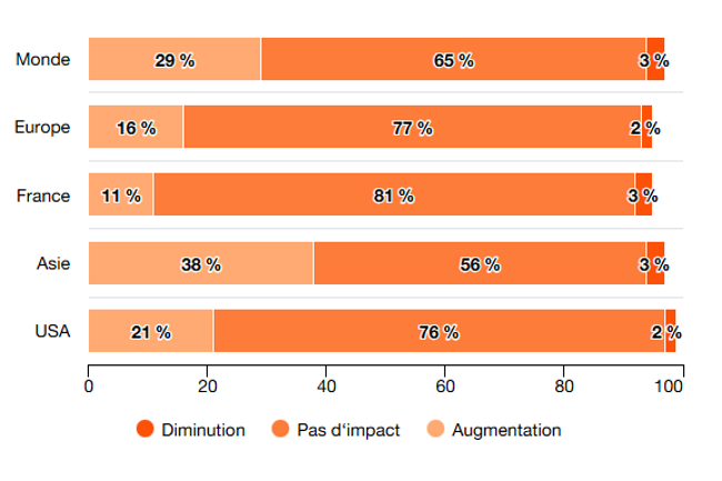 Au-delà des aspects techniques et financiers de l’IA, les dirigeants ne doivent pas oublier l’impact de la technologie sur l’emploi. Au fur et à mesure de son appropriation par les équipes, celles-ci vont évoluer avec la disparition de certains postes. « En France, cela concernera 11% des juniors, 8% des fonctions intermédiaires et 14% des fonctions supérieures d’ici trois ans », précise PWC. Il ajoute que le cas des juniors divise les entreprises, la moitié d’entre elles pensent qu’elles auront moins besoin de jeunes, alors que l’autre moitié parie sur des effectifs stables ou en augmentation.