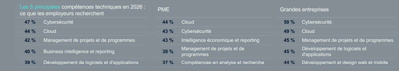 Top 5 des compétences IT les plus recherchées en France en 2026. (Source : Robert Half)
