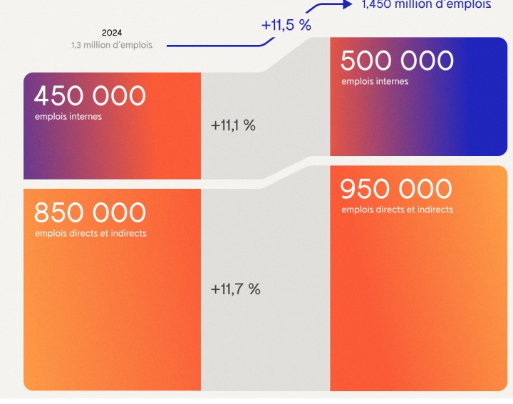 Sur le front de l’emploi, les start-ups IT françaises représentent 1,45 million d’emplois (dont 500 000 internes), en progression de 11,5 % en un an, signe de leur capacité à se développer malgré le contexte économique incertain. L'activité du secteur a permis de générer 150 000 emplois en 1 an. Le rythme de création d'emplois est toutefois inférieur à la période 2023-2024, qui avait vu les chiffres augmenter de 18 %. Si on regarde l'emploi interne, l'écosystème a surpassé ses propres prévisions, avec 50 000 recrutements réalisés en un an, soit 10 000 de plus que l'objectif initial. Quant à l'emploi direct et indirect, bien qu'en augmentation de 11,7 % sur un an, il ralentit fortement par rapport à la période précédente (+21 %), sous l’effet du ralentissement économique et la baisse de la demande.