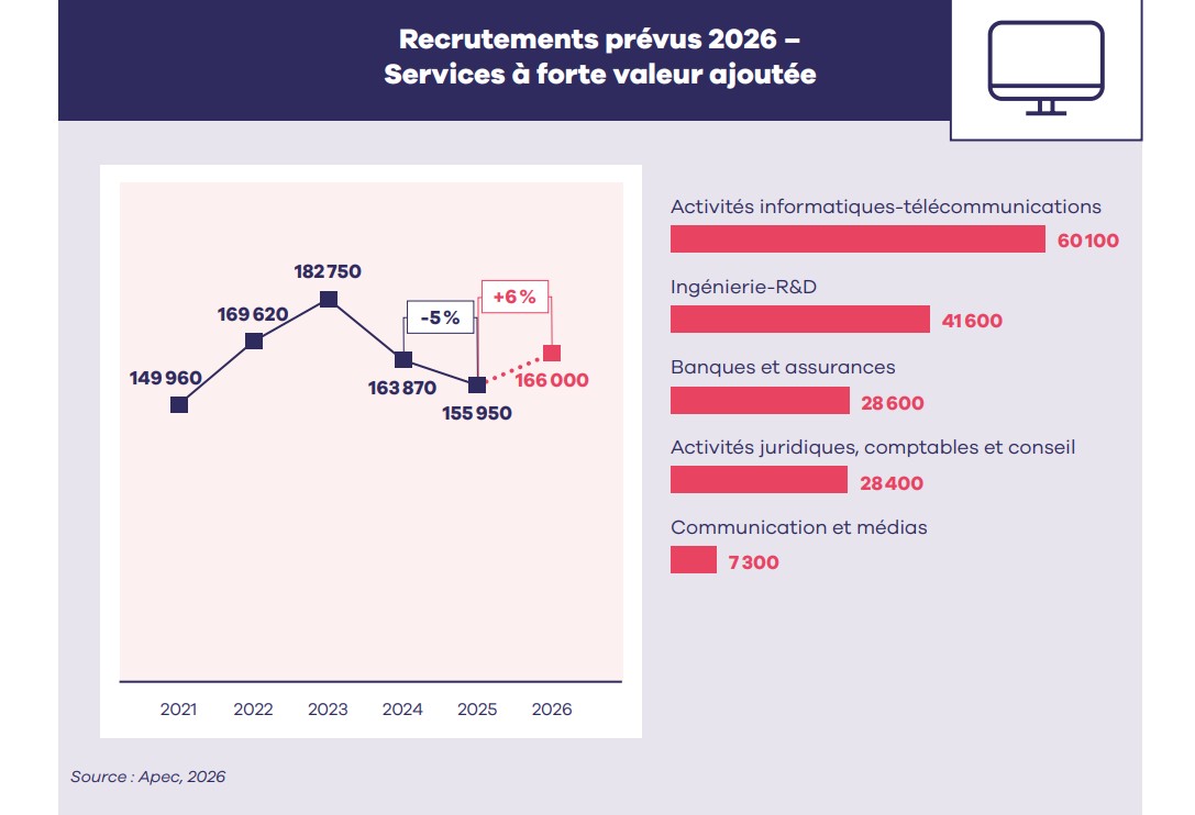 Recrutements dans les services à forte valeur ajoutée en 2026. (Source : Apec)