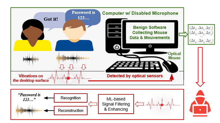 Elle repose sur la découverte que certaines souris optiques sont capables de capter des vibrations sonores incroyablement faibles qui leur parviennent à travers la surface du bureau sur lequel elles sont utilisées. Ces vibrations peuvent ensuite être captées par différents types de logiciels sur des PC, Mac ou Linux, y compris des frameworks graphiques ou des moteurs de jeux (Unity, Unreal,...) à défaut, des composants privilégiés au niveau du noyau du système d'exploitation.