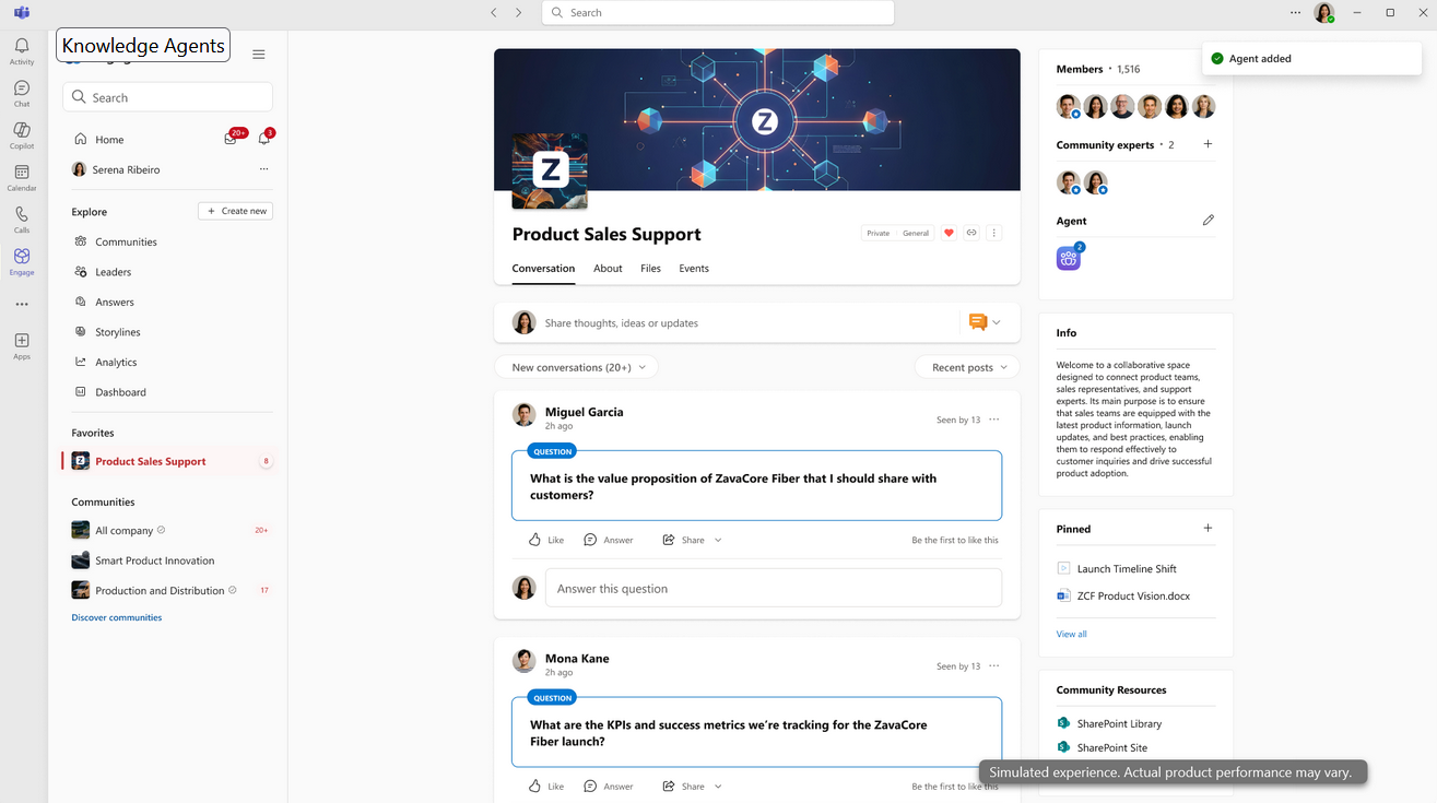 Des agents ont été intégrés à Viva Engage, la plateforme RSE. (Crédit Photo: Microsoft)