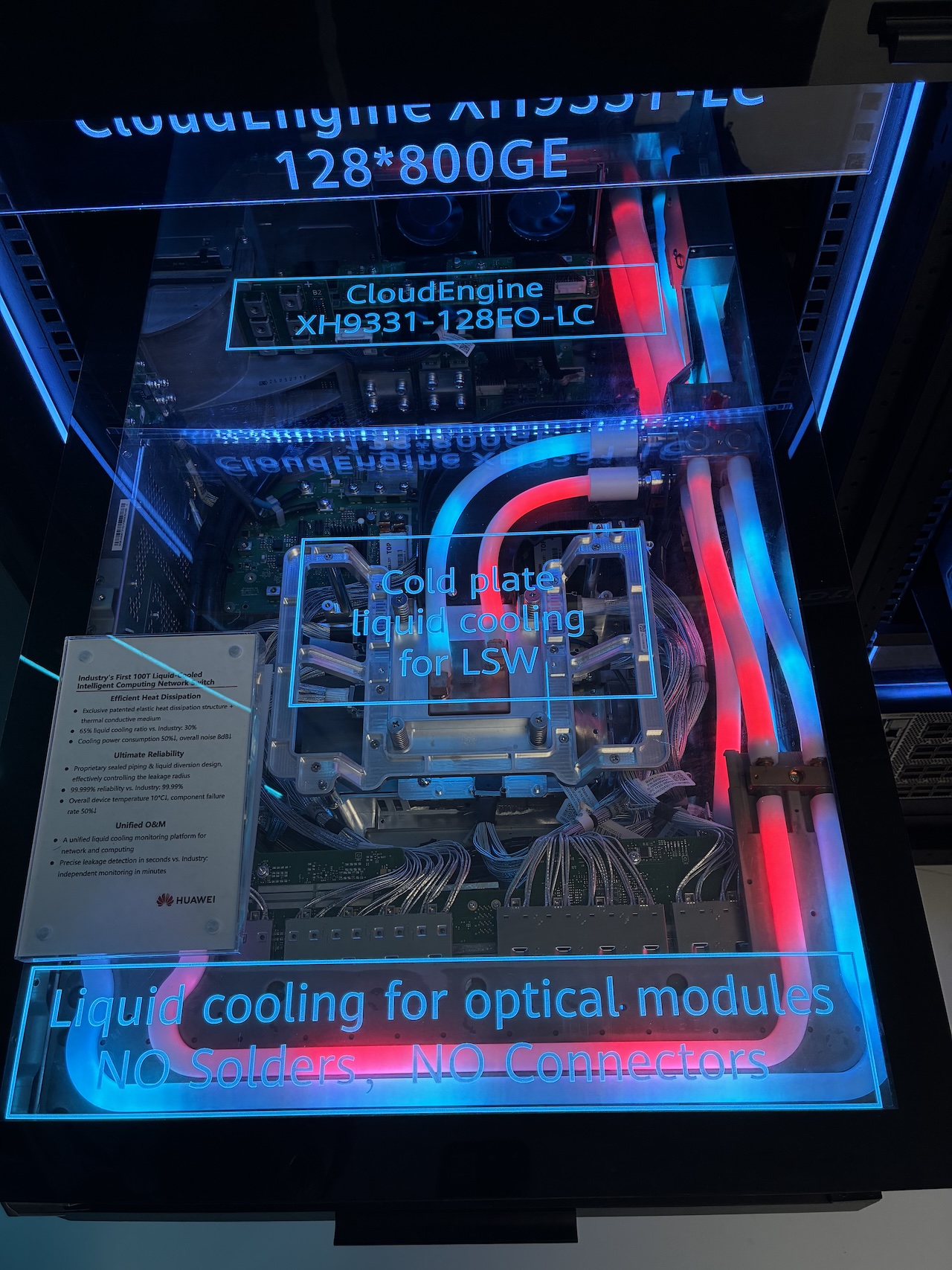 Là où ses concurrents se concentrent principalement sur le refroidissement des CPU et ASICs, « l’innovation chez nous, c’est que nous allons tout refroidir, pas seulement la CPU mais surtout les ports », insiste Christophe Batiard, CTO Europe chez Huawei. (Crédit P.K.).