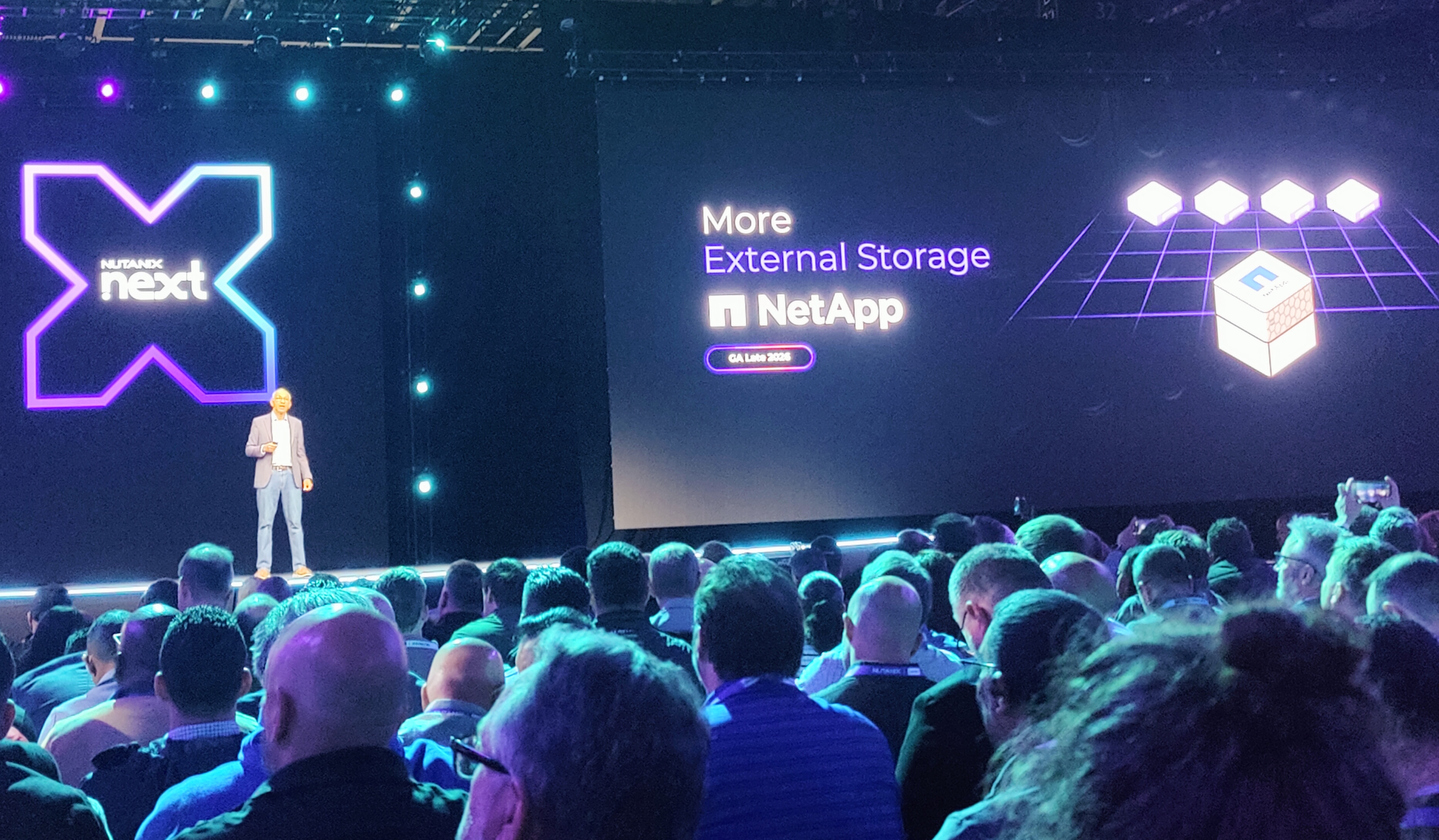 Terminons enfin sur l'extension du stockage externe supporté par l'hyperviseur maison AHV, initiée en 2024 avec les baies de stockage PowerFlex de Dell; Nutanix avait ensuite rajouté en 2025 les systèmes de Pure Storage (devenu Everpure) à son catalogue. En 2026, un connecteur a été développé pour les baies de stockage NetApp (dont les AFA) afin d’accompagner les client désirant migrer depuis VMware sans renoncer à leur plateforme de stockage. Concrètement, Sandeep Singh, vice-président senior en charge du stockage entreprise chez NetApp explique, « il est désormais possible de migrer vers Nutanix pour connecter l’hyperviseur AHV au stockage NetApp via Ontap ». Cette migration est accélérée par l’outil Shift du spécialiste du stockage qui réduit le temps de conversion des VM à quelques minutes. Le responsable met par ailleurs en avant la sécurité avec les protections contre les ransomwares et une gestion des données intégrée via le protocole NFS. A noter que ce partenariat s’étend aussi à Flexpod, l’offre de convergence entre Cisco et NetApp qui était auparavant basée sur VMware pour la couche de virtualisation. La disponibilité générale du support des baies NetApp est attendue d’ici la fin de l’année.