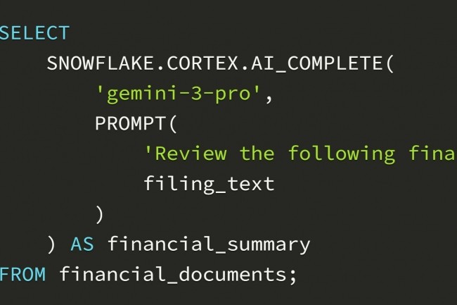 Dans Cortex AI Functions, la solution de Snowflake pour faciliter la création de pipelines d'IA évolutifs à partir de données d'entreprise multimodales avec SQL, les LLM de Google apportent plusieurs avantages selon le fournisseur. « Avec le raisonnement avancé de Gemini 3, les clients peuvent aller au-delà des questions-réponses basiques pour bénéficier d'analyses nuancées, d'une aide à la planification et à la prise de décision qui reflètent mieux la complexité réelle de leurs activités », explique Snowflake. A noter que les LLM Gemini seront prochainement pris en charge dans les solutions Intelligence et Cortex Agents.