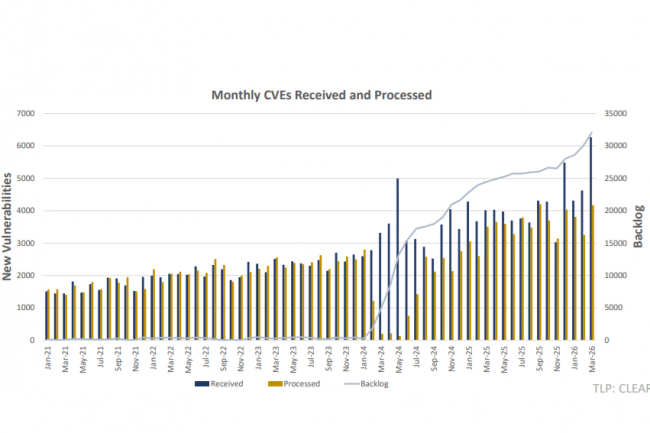 Selon l'organisme, un arriéré de CVE a commencé à s'accumuler début 2024, et il n'a pas été en mesure de le résorber en raison d'une augmentation du nombre de signalements. Selon l'institut, ces signalements ont augmenté de 263 % entre 2020 et 2025, avec près d'un tiers de vulnérabilités supplémentaires signalées rien qu'au premier trimestre 2026 par rapport à la même période l'année dernière. Le NIST, qui a enrichi près de 42 000 CVE en 2025 - soit 45 % de plus que n'importe quelle année précédente - est désormais confrontée à un arriéré total de plus de 30 000 CVE, a expliqué Harold Booth, responsable technique et de programme au NIST, lors de la conférence sur la cybersécurité VulnCon du 15 avril.