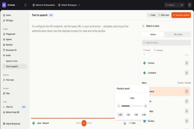 - Mistral lance Voxtral TTS. Dans son portefeuille de modèles Voxtral dédiés à l’audio , Mistral ajoute un modèle ouvert (disponible sur Hugging Face) pour le texte to speech Voxtral TTS. Un terrain où il est en concurrence avec ElevanLabs et OpenAI, mais aussi le laboratoire français Kyutai. Le modèle de 4 milliards de paramètres repose sur le LLM Ministral 3B en intégrant des composants d’algorithme de synthèse vocale et de codec audio. Il prend en charge neuf langues : anglais, français, allemand, espagnol, néerlandais, portugais, italien, hindi et arabe. Il est disponible en test dans Mistral Studio avec une tarification de 0,016 $ par tranche de 1000 caractères. Côté usage, le fournisseur oriente clairement Voxtrall TTS vers les services et l’assistance client dans plusieurs secteurs d’activités (commerce, industrie, finance,…).