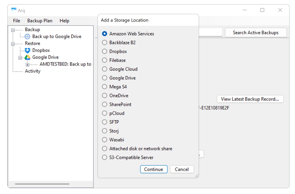 Arq 7 Backup prend en charge une multitude de destinations, y compris les services de stockage en ligne les plus populaires.