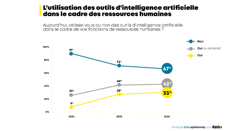 Utilisateurs de l'IA dans la fonction RH entre 2024 et 2026 (Source: Opinionway/Kelio)
