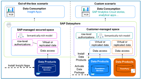 - Services de base et produits de données : SAP fournit des données opérationnelles sous forme de packages réutilisables pour les scénarios métier.