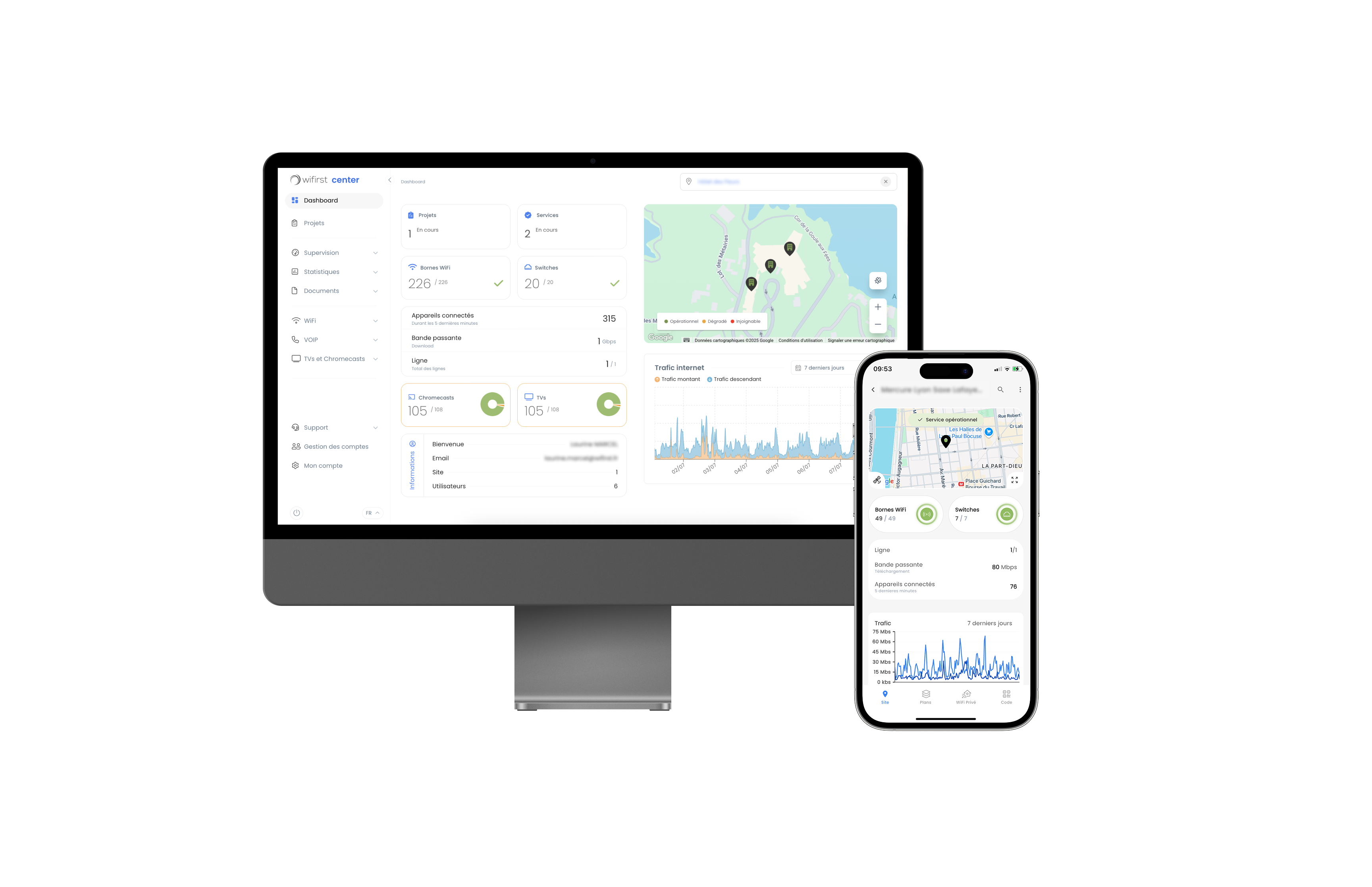 Accessible en mode as a service, la plateforme Wifirst mise sur une approche multi-constructeurs unique, développée en interne, capable d’offrir une vue unifiée et centralisée sur l’ensemble d’un parc d’équipements réseaux. Peu importe la marque du constructeur : la DSI bénéficie d’un pilotage unique, de statistiques consolidées et de mises à jour automatiques.