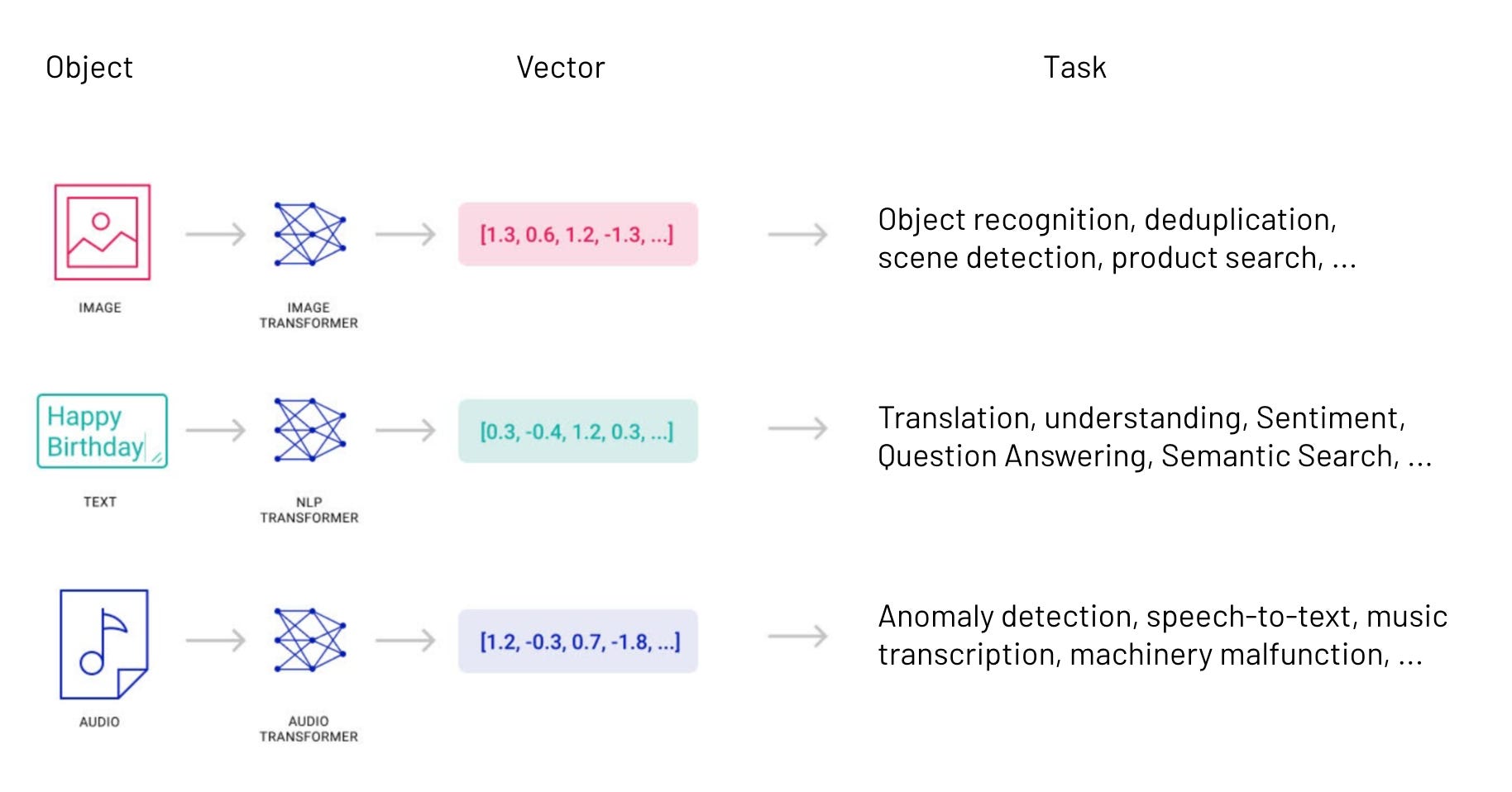 Les bases de données vectorielles et la recherche vectorielle sont les deux principales plateformes que les développeurs utilisent pour convertir des informations non structurées en vecteurs, maintenant plus couramment appelés embeddings. L’embedding est une méthode de transformations de données provenant d'images, de textes, de sons, de données utilisateur, ou de tout autre type d’information, en vecteurs numériques. Une fois l'information codée en tant qu'embedding, il devient plus facile, rapide et nettement plus évolutif de stocker, rechercher et comparer ces informations pour de grands ensembles de données.