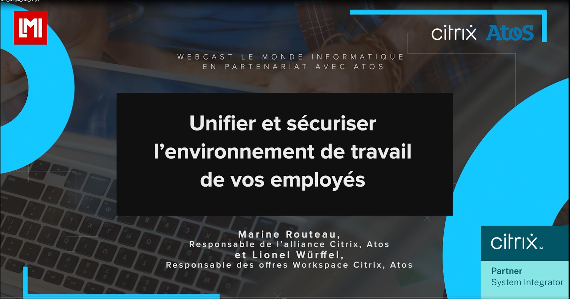 Marine Routeau, Responsable de l'alliance Citrix et Lionel Würffel, Responsable des offres Workspace Citrix, tous deux chez Atos, présentent dans cette vidéo les enjeux du télétravail et comment la solution Citrix Workspace apporte aux utilisateurs un environnement de travail sécurisé.