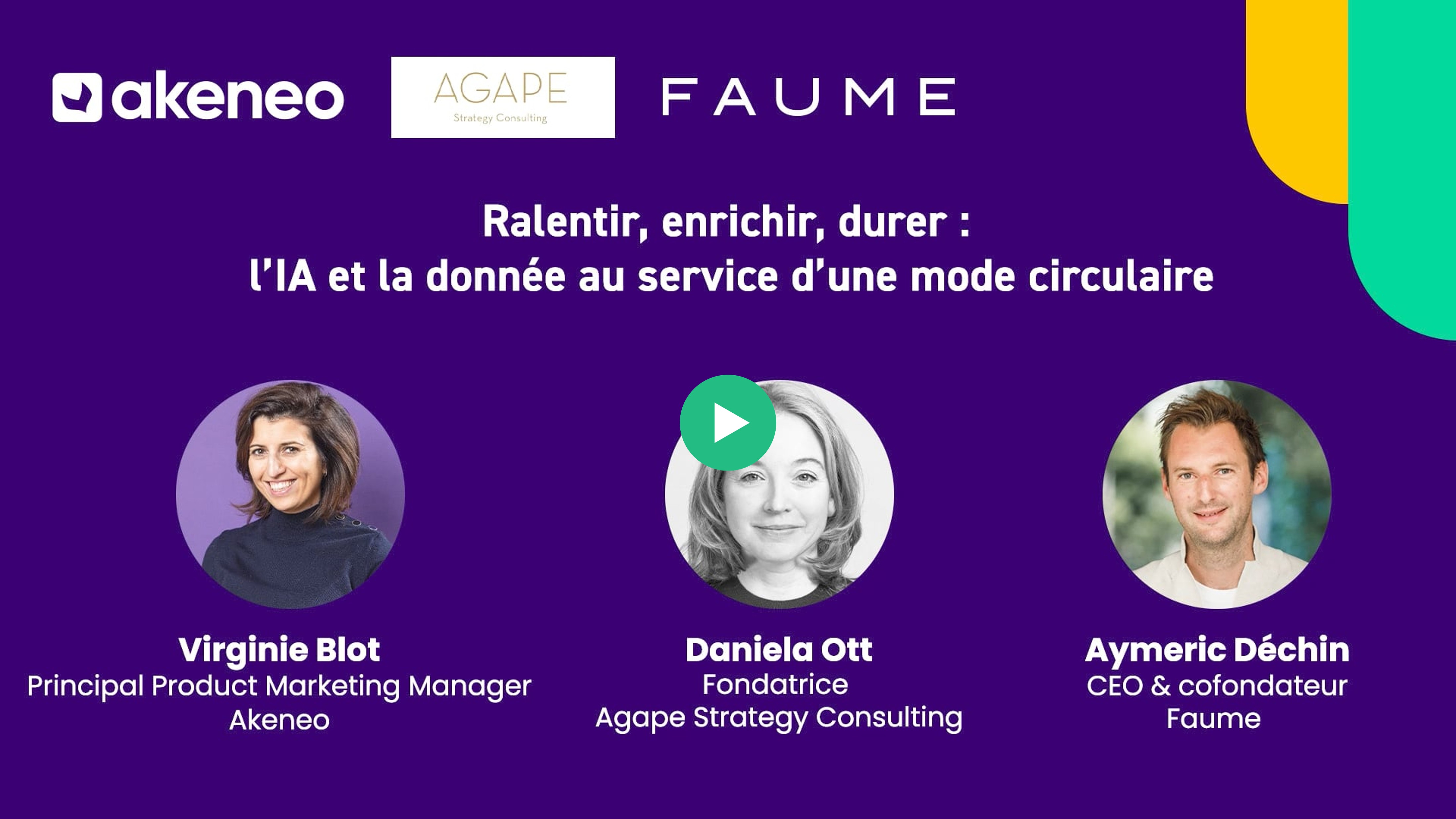 Dans ce webcast, Virginie Blot (Akeneo), Daniela Ott (Agape Strategy Consulting) et Aymeric Déchin (Faume) explorent comment les marques réinventent leurs modèles pour concilier performance, durabilité et innovation